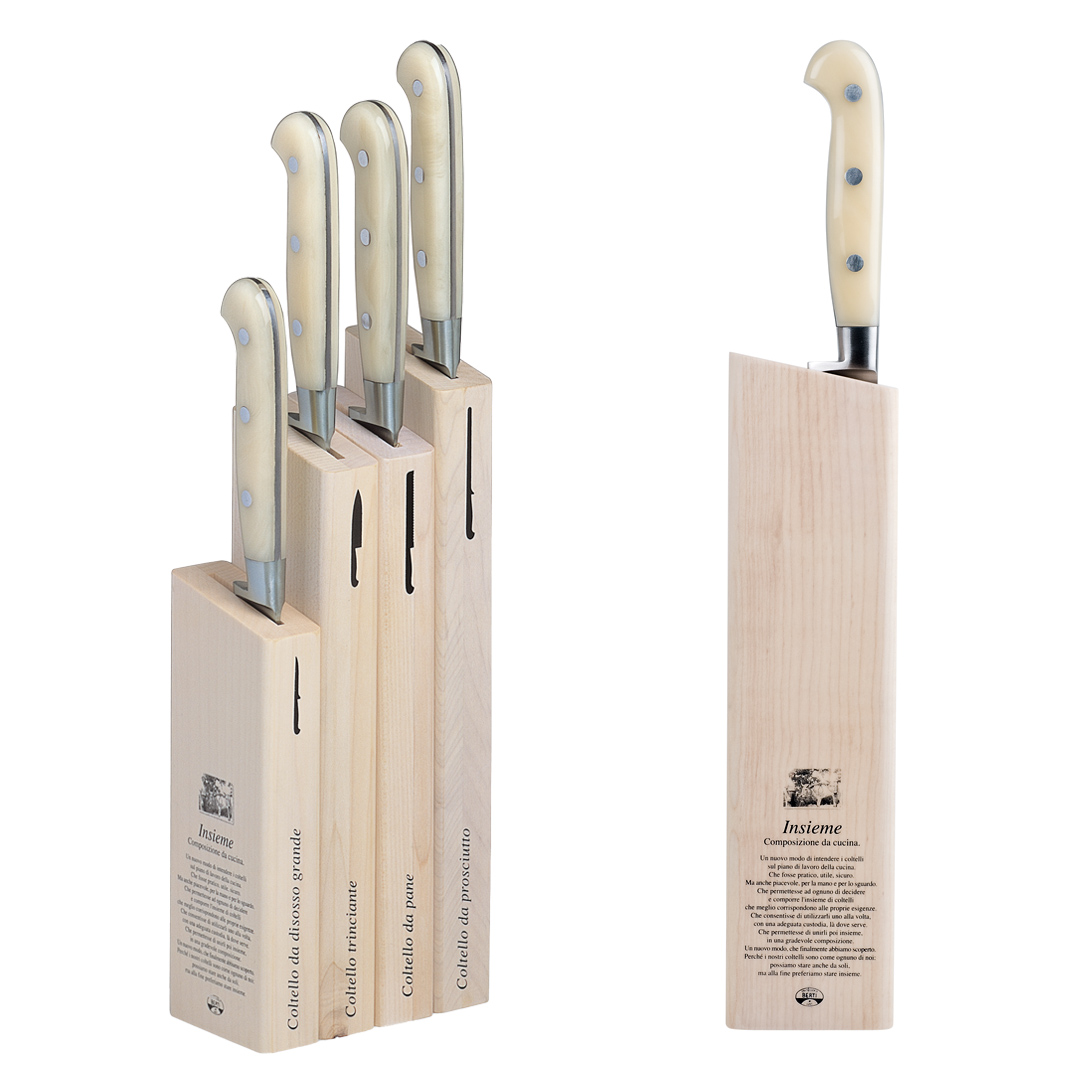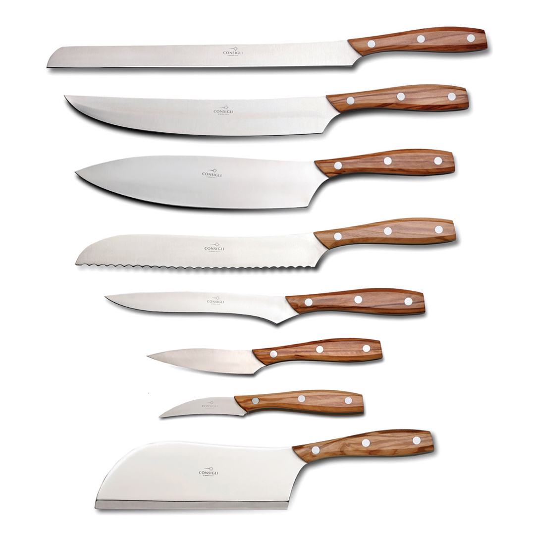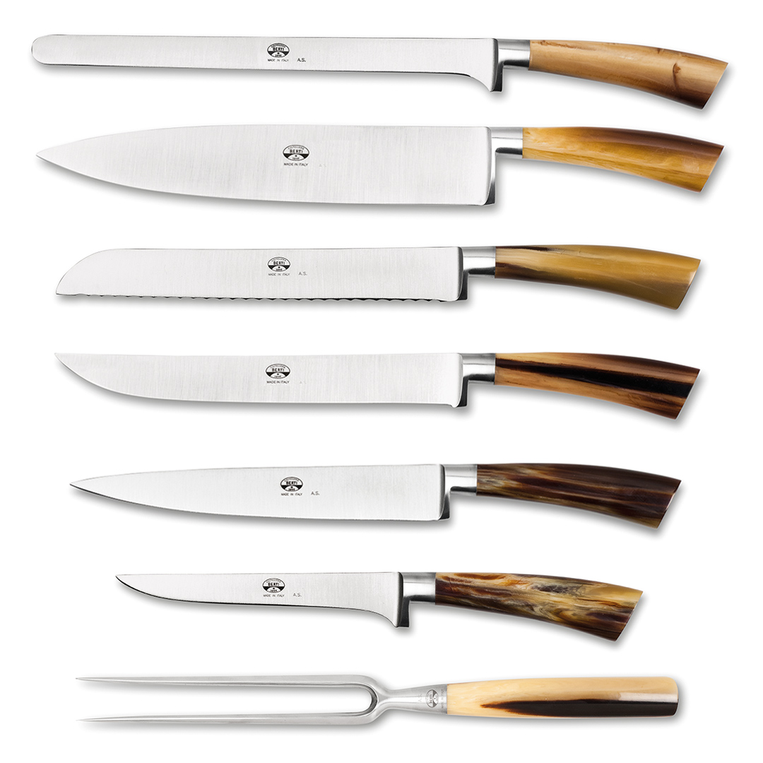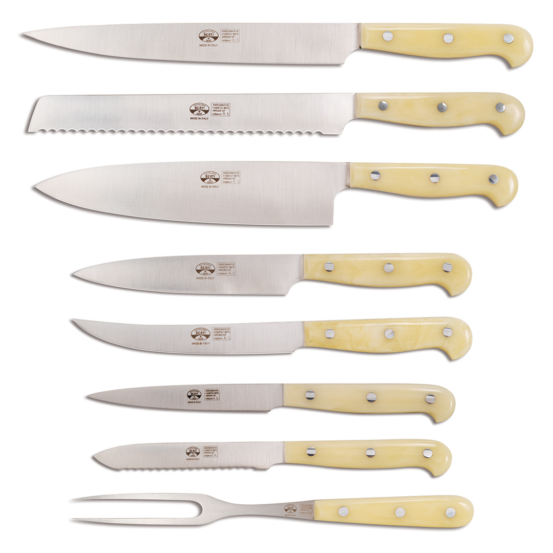 Beautiful and high quality kitchen knives are the trademark of a true chef - whether professional or as a favorite pastime. Each collection of handcrafted Italian knives is designed to meet essential needs with chef, utility, and bread knives as well as knives for specific uses such as carving, slicing, boning, and more. Get a truly one-of-a-kind set with our collections that feature exclusive individual blocks that can be customized with the perfect knives for your needs. 100% handmade in Scarperia, Tuscany and then delivered right to your kitchen.