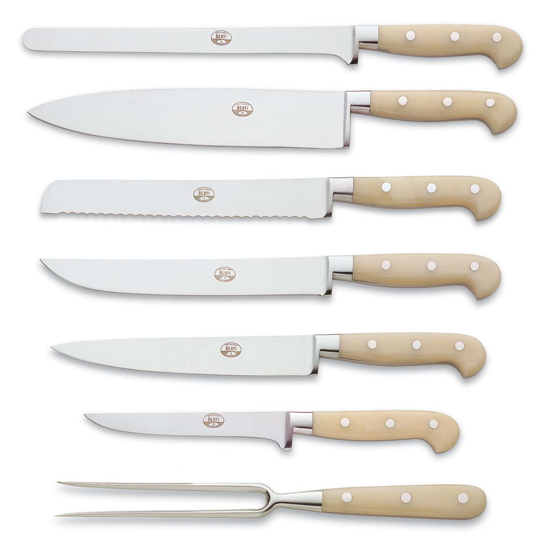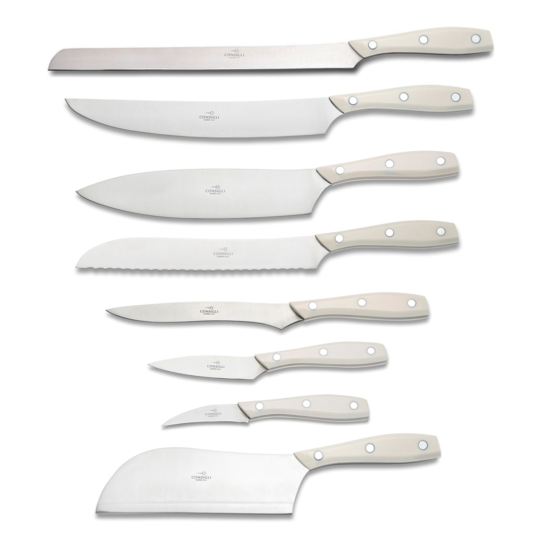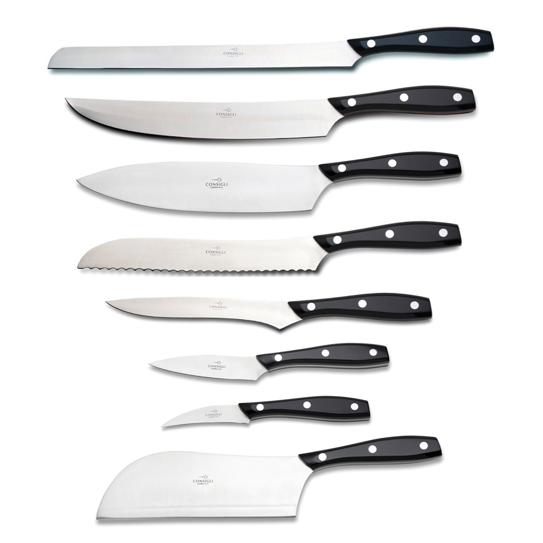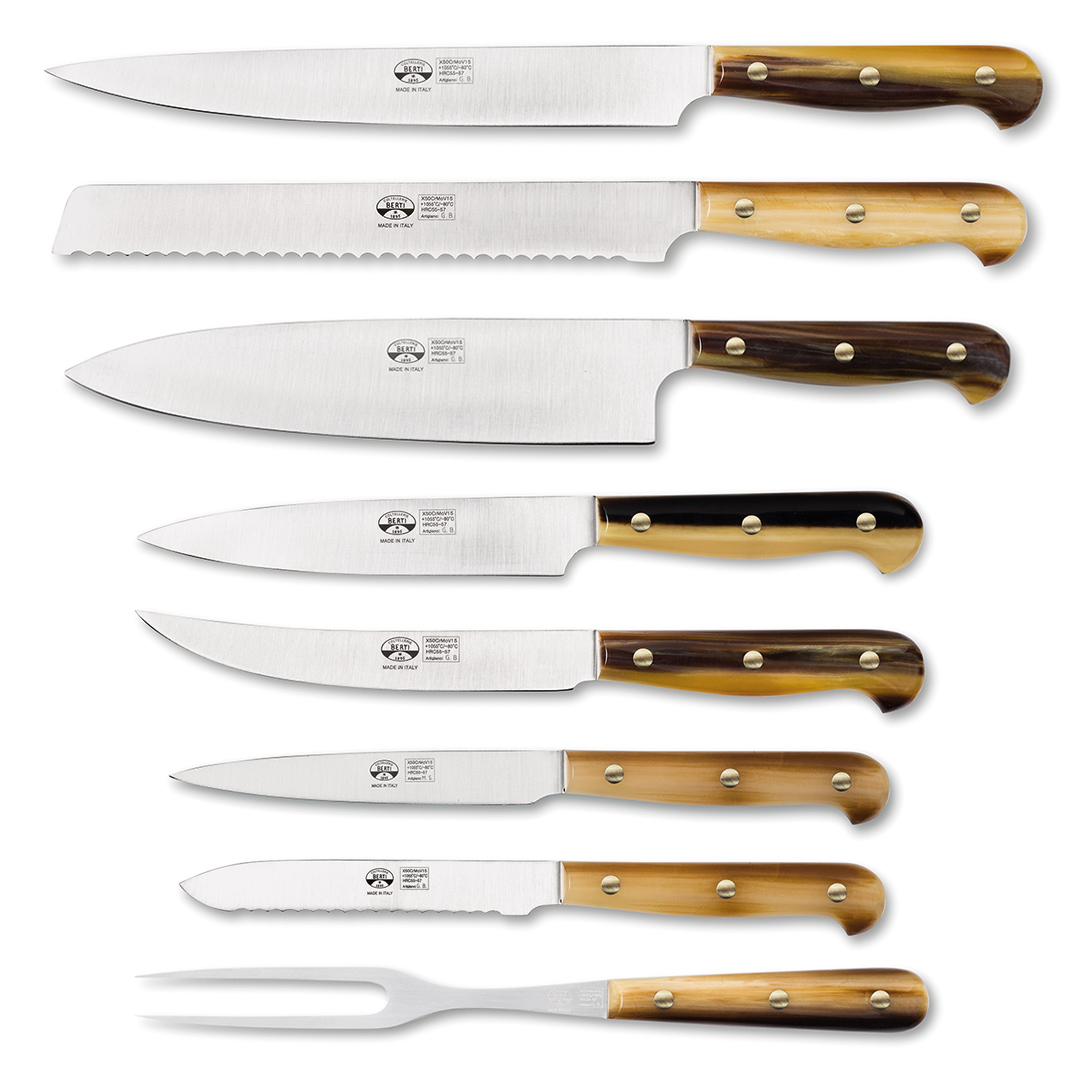 Beautiful and high quality kitchen knives are the trademark of a true chef - whether professional or as a favorite pastime. Each collection of handcrafted Italian knives is designed to meet essential needs with chef, utility, and bread knives as well as knives for specific uses such as carving, slicing, boning, and more. Get a truly one-of-a-kind set with our collections that feature exclusive individual blocks that can be customized with the perfect knives for your needs. 100% handmade in Scarperia, Tuscany and then delivered right to your kitchen.